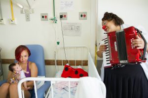 Continuidade das visitas artísticas de palhaçaria em quatro hospitais públicos de Belo Horizonte e ampliação do programa para um quinto hospital da Região Metropolitana, com atuação regular de duplas ou trios de artistas ao longo de todo o ano, fortalecendo vínculos e promovendo a humanização do ambiente hospitalar.